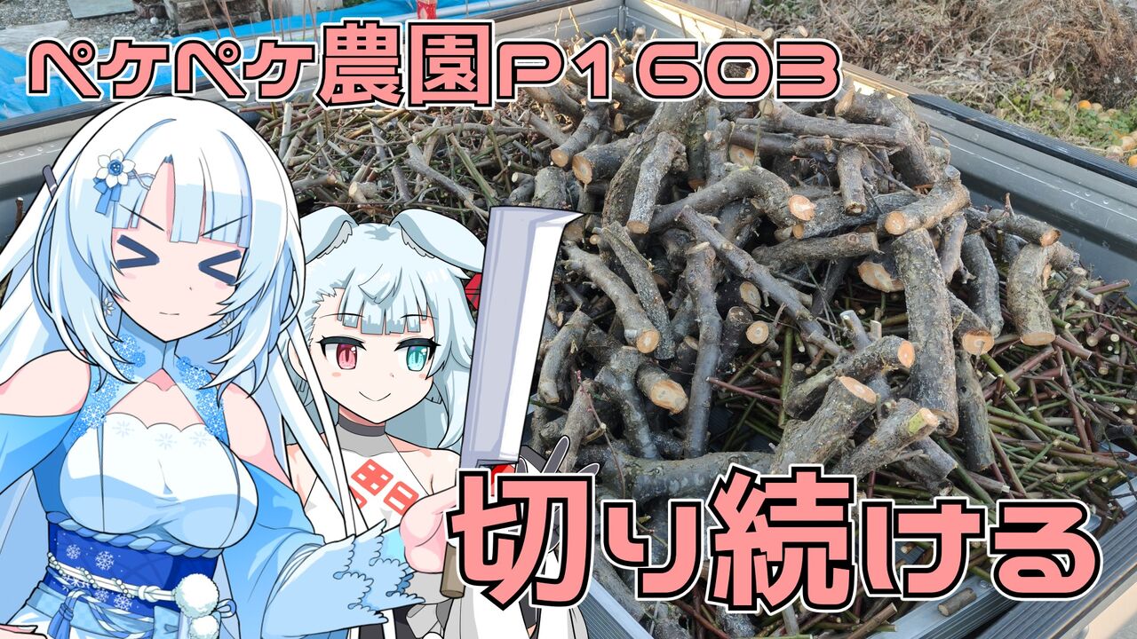 2026年01月12日 剪定した枝をひたすらに切り続けるだけ 本日の農作業 午前 枝を切る午後 枝を切る天気が良く暖かくはないけど寒くも無い一日でした。天気予報の数字を見る限りはかなり寒かったようですね。そんな本日のお仕事は梅の剪定をした後に残った枝を細かくする作業です。この作業をすることで木が乾燥したら燃やす事が出来ます。ただ、燃やすにしても今の時期は乾燥しているのでしばらくは放置ですね。そのうちに乾燥するでしょう。とうことで20センチぐらいに切り刻んでいました。たくさんあったので今日一日では終わらなかった。2026年1月12日 農作業日誌P1603 剪定した枝をひたすらに切り続けるだけ